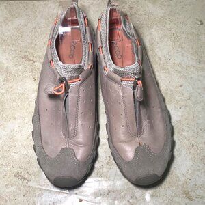 Ecco Womens Gray Suede & Leather Slip-On Shoes Toggle Closure Gorpcore Casual