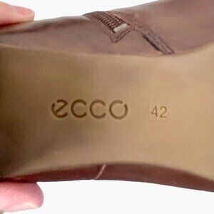 Ecco Womens Leather Ankle Boots Size 42 EU/ 10 US Brown Side Zipper Block Heel
