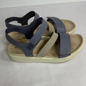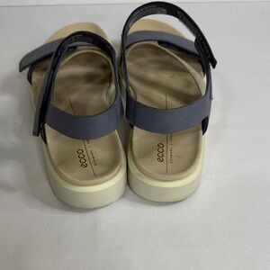 Stylish Ecco sandals with navy straps and beige sole. Ideal for everyday wear.