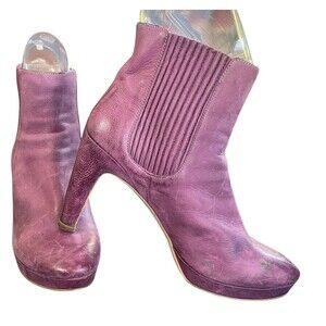 Ecco Womens Size 40 EUR Purple Leather Pull On Heeled Fashion Boots Bootie
