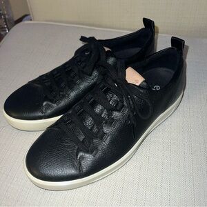 Ecco Womens Size 9W Golf Shoe Black Leather Lace Up Sneaker Spikeless Sneaker