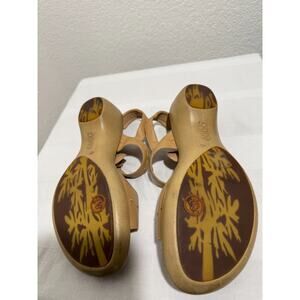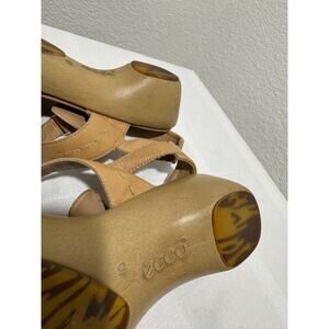 Ecco Womens Tan Leather Sandals Slingback Wedge Heel Sz 9.5 Euro 40 Open Toe