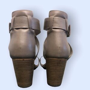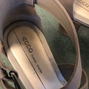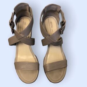 Ecco strappy chunk heels. Taupe . Strap across toe, straps criss cross in front and encircle ankle. Side buckle to close . 3” heel. Flexible rubber sole. so cute and also comfortable . Excellent condition. Sz 41 (10-10. 1/2). See chart in listing
