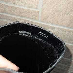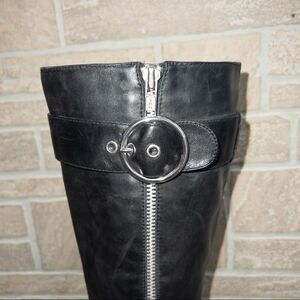 Description/Details: 3” heel height. Side buckles and zippers. Almond toe shape. Some peeling on interior boot.