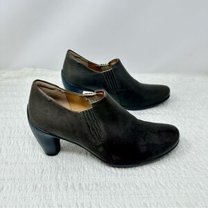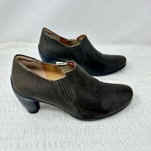 Genuine leather Oxford-style booties from Ecco! These are exceptionally well-made and have extremely durable soles/heels! They have a few marks on the leather from storage, but are in absolutely wonderful condition. These are a very unique green/grey color.