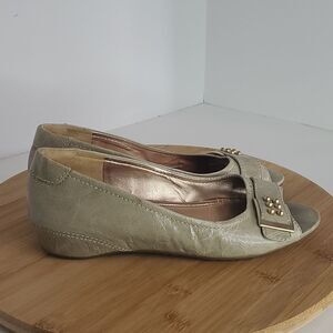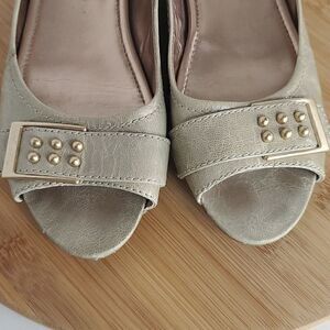 Ecco Leather Peep Toe Wedges Studs and Buckle Women's Shoe Size 36 (US 5/5.5)