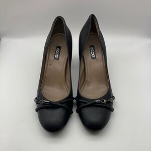 Ecco Lobster Strap Embellished Black Leather Heels Size 41/10,5