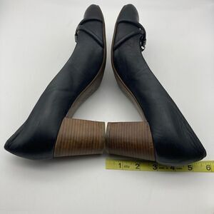 Ecco Distressed Black Leather with Functional Lobster Hook Cord at the Vamp Stacked Heel is 2-3/4” Pre-owned
