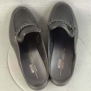Ecco Sculpted Leather Luxury Braided Black Slip On Mule womens size 10-10.5