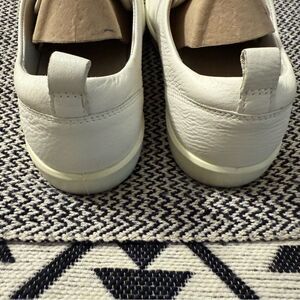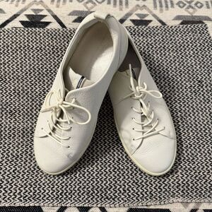 Elegant white/ivory leather sneakers by Ecco. Ideal for casual wear. Comfortable for walking and stylish design. Shoes have some wear(see photos).