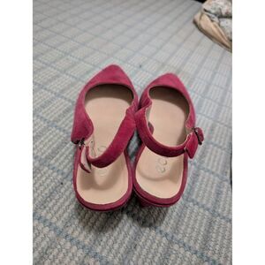 Keywords: Ecco, slingback heels, dress shoes, raspberry suede, pointed toe, women's shoes, heels, formal wear, office attire, cocktail shoes, suede heels, slingbacks, retro style, classic shoes