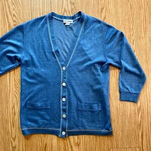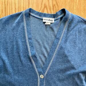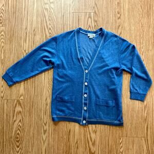 Eccobay Vintage Blue V-Neck Cardigan Sweater Unisex Mens Large