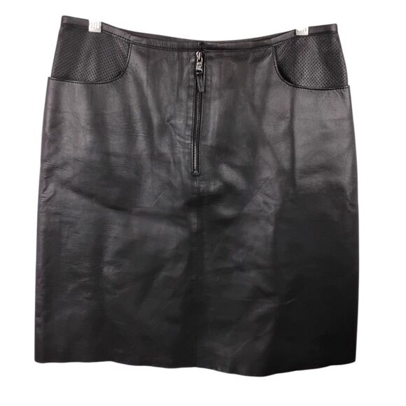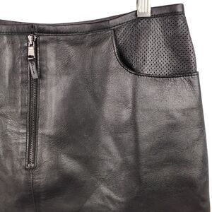 Eccoci Black Vintage Leather Zip Front Skirt with Raw Hem - Size 8