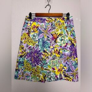 Skirt is a straight cut with a subtle flair. Zipper in back