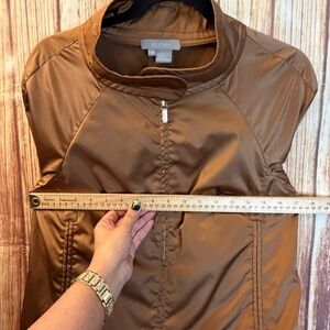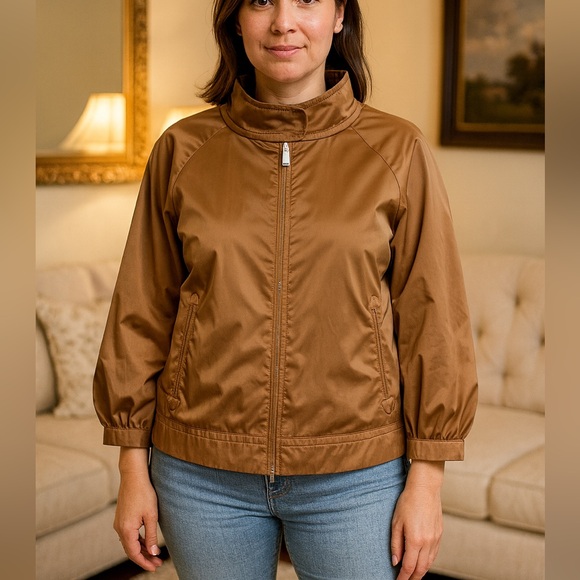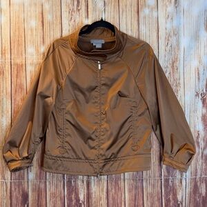 Eccoci Women’s Satin 3/4 Puff Sleeve Zip Jacket Double Zipper Brown Size 6