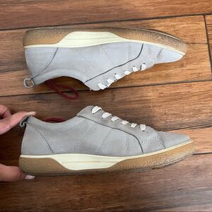 Good used condition, there are some black spots throughout the exterior of the shoe (pictured). Please review photos for condition. There are no rips in the shoes. I have included the shoe size chart from the Ecco website, 37 corresponds to 6 or 6.5.