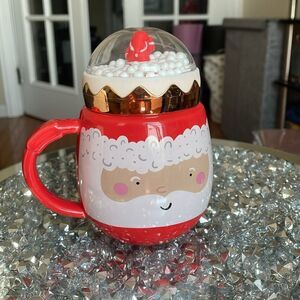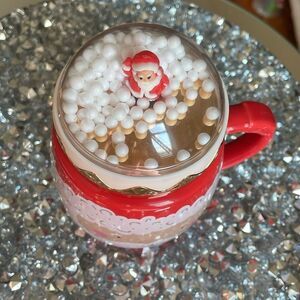 Eccolo red ceramic Christmas festive snow globe Santa Claus Xmas coffee mug