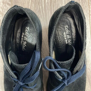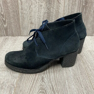 Echi Di Moda Made In Italy Black Suede Heeled Ankle Boots in size EU 37 (US 6.5). Great preowned condition, some minor scuffs as shown in photos. Black suede with dark blue stitching and laces, textured rubber outsole. Please see photos for approximate measurements and details. Item may show difference in color based upon photography and perception. Photos are part of the description, as everyone’s level of condition may vary. From smoke free and pet free home. All packages are shipped the same or next business day.