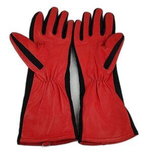100% Leather RED/Black Retro Fun Lined Gloves Size Small
