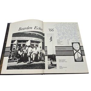 Pair of vintage Bearden High School yearbooks from Knoxville, Tennessee: Echo 1966 and Echo 1967. Each hardcover volume measures approximately 10.75″ × 7.75″ and features senior portraits, candid class photos, sports team pages, club activities, local advertisements, and hand-written messages from classmates. Homecoming features, football team spreads, and senior favorites offer a rich glimpse into Bearden High life during the mid-60s. A great set for alumni, regional historians, or collectors of Tennessee school memorabilia.