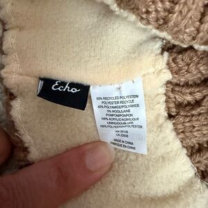 Echo cable knit beanie with a soft faux fur pom, color: Tan/light brown. Partial fleece lined interior. Never worn.