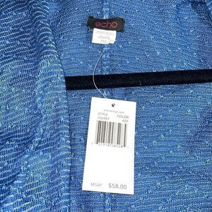 Echo Design Open Cardigan womens One Size light Beach Duster Travel blue NWT