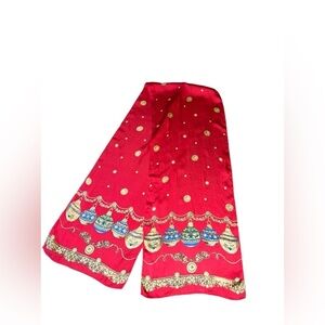 Echo Festive Red Background with Holiday Ornaments Silk OblongScarf Rare…