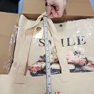Echo Friendly Reusable Shopping Tote Bag PLANT SMILES & GROW LAUGHTER NWT