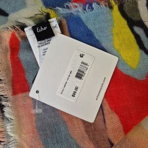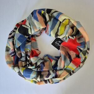 Multi colorful abstract 100% Wool infinity scarf from Echo New York. Measures 80 x 30.