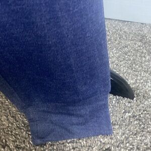 Echo New York Women’s Sleepwear 2-piece Tee and Pants. Blue Heather. Tee - short sleeves, v- neck, approx. 1” light heather gray stripe down each side. Pants - elastic waist and drawstring under, hand slot pockets, band at ankles. Really soft fabric. Sz L. NWT