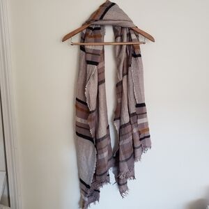 Echo Oversized Wrap Blanket Scarf Lightweight Rayon Wool Neutral Browns Fringe