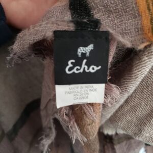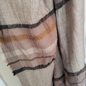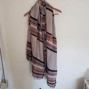 Echo Oversized Wrap Blanket Scarf Lightweight Rayon Wool Neutral Browns Fringe