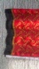 Red with gold horse bit pattern/gold chain pattern. Edges are black. Horizontally there are fabric strips that are sheer while others are opaque.