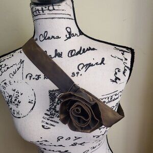 Echo Vintage 80s Brown Silk Rosette Adjustable Belt Spring Trend. Unique Design, Adjustable Buckle, Large Silk Rosette Design, 39" Long, 1.5" Wide. Good Pre-Owned Condition