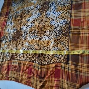 This stunning accessory combines a bold animal print with a plaid accent, offering a unique blend of style and warmth. The yellow and brown color scheme enhances its versatility, making it a perfect addition to any wardrobe. Crafted with a soft, flowing texture, this wrap is ideal for draping elegantly over your shoulders.