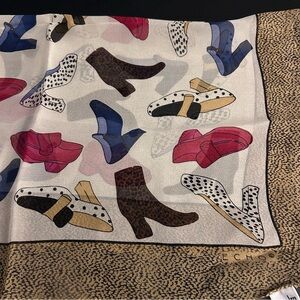 Elegant vintage silk scarf with shoe design pattern. Great condition. 20x20”