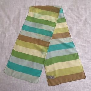 •Echo Vintage Striped 100%Silk Signed Logo Scarf 54”x11”
