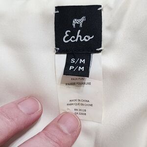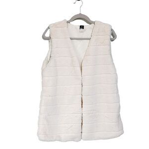 Echo cream faux fur vest with pockets hidden front closure missing middle hook 20" pit-pit 27" long