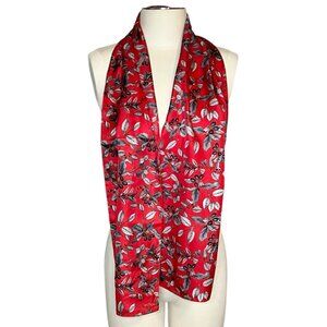 Excellent condition red, black, and white floral print silk scarf by Echo. Scarf measures 59” L and 10”w. This would make a great neck or hair scarf.
