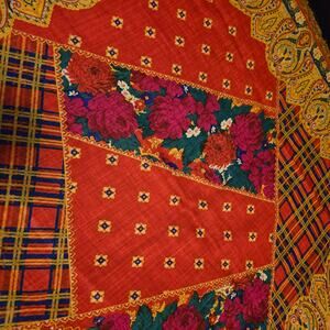 The intricate patchwork design features a lovely rose pattern, making it a unique and eye-catching piece. Made from high-quality wool, this scarf is soft, cozy, and perfect for any occasion.
