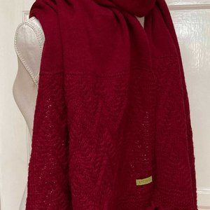 Echo,100% Mercerized Knitted Wool Boho Wrap/Shawl With Fringe in Cranberry, Unworn, with Tags