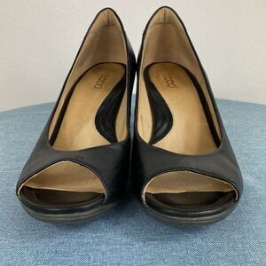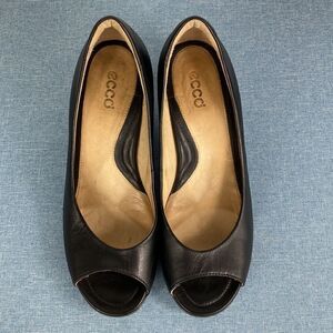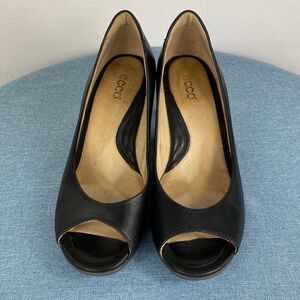 Echo black leather peep toe pumps size 8.5-9