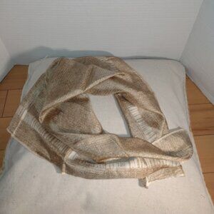 Echos: Beige and gold scarf. Measures approx. 23"x23".