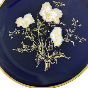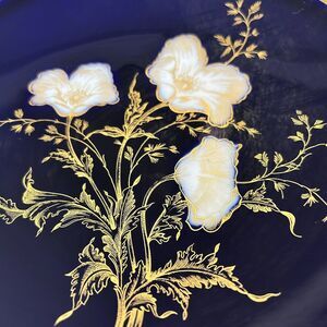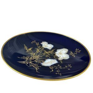 Echt CM Hutschenreuther Kobalt Gold Floral Footed Dish 7.5" Plate Pedestal Bowl