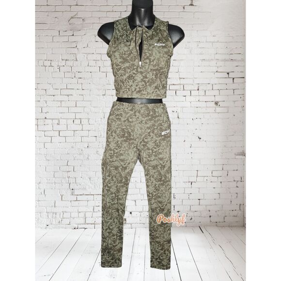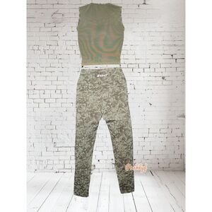 Echt Half Zip Camo Sleeveless Crop Top and Legging Set Medium
