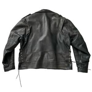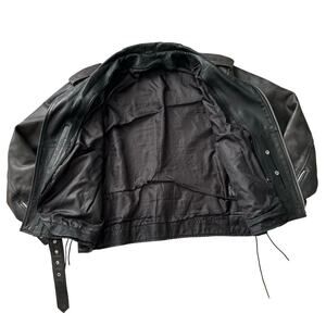 Echtes Leder VTG Biker Moto Belted Lined Distressed Black Leather Jacket 52 XL