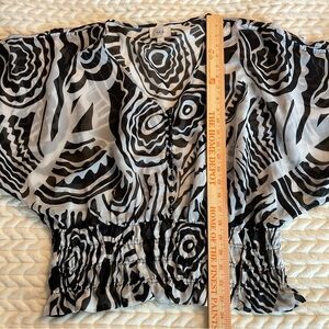 ECI women blouse size large, cinched, buttons, balloon sleeves, sheer, elegant,