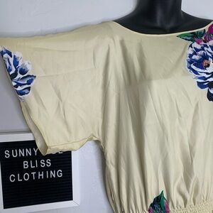This is a flowy floral blouse with embroidered beaded detailing on the flowers. It’s a size small in good pre owned condition.