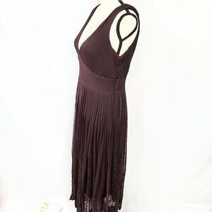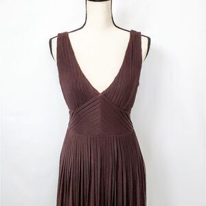 Eci New York Deep V Neck a Line Pleated Gown Dress