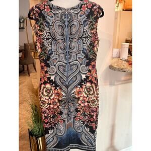 This stunning ECI midi dress is a must-have for any fashion-forward woman. The gorgeous paisley pattern in multicolor is eye-catching and unique, making it perfect for any occasion. The sleeveless sheath style is flattering and comfortable, while the midi length adds an elegant touch. This designer dress is size 6 and made for regular size women. It's perfect for those who want to make a statement with their fashion choices. Whether you're going to a wedding, a party, or just want to add some color to your wardrobe, this dress is sure to turn heads.